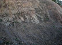 主动防护系统是以钢丝绳网为主的各类柔性网覆盖包裹在所需防护斜坡或岩石上,以限制坡面岩石土体的风化剥落或破坏以及危岩崩塌(加固作用),或将落石控制于一定范围内运动(围护作用)。