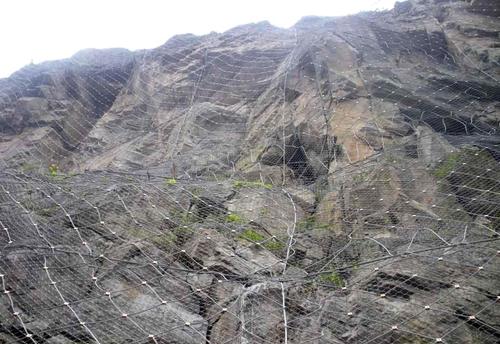 是一种完成两根钢丝绳穿插节点紧固的特别扣件,其对钢丝绳施加一定的荷载,避免节点处钢丝绳产生错动和别离,选用柔性网进行坡面防护的特点在于使用局部受力、整体承载的柔性优势对浅、表层危岩体(危石)进行围护,限制落石运动范围,部分按捺崩塌的产生。